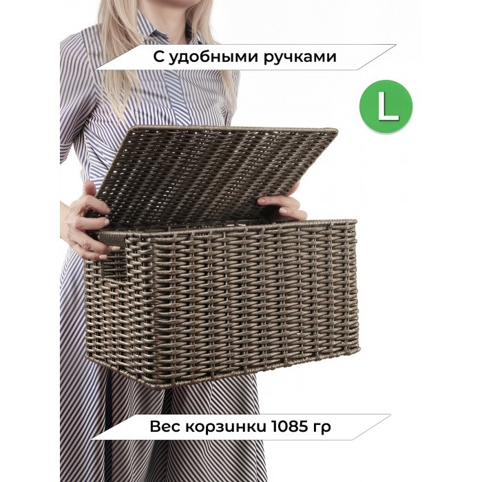 Корзина плетеная с/крыш M 320*220*180-mpl-fbo иск/ротанг, серый 265520