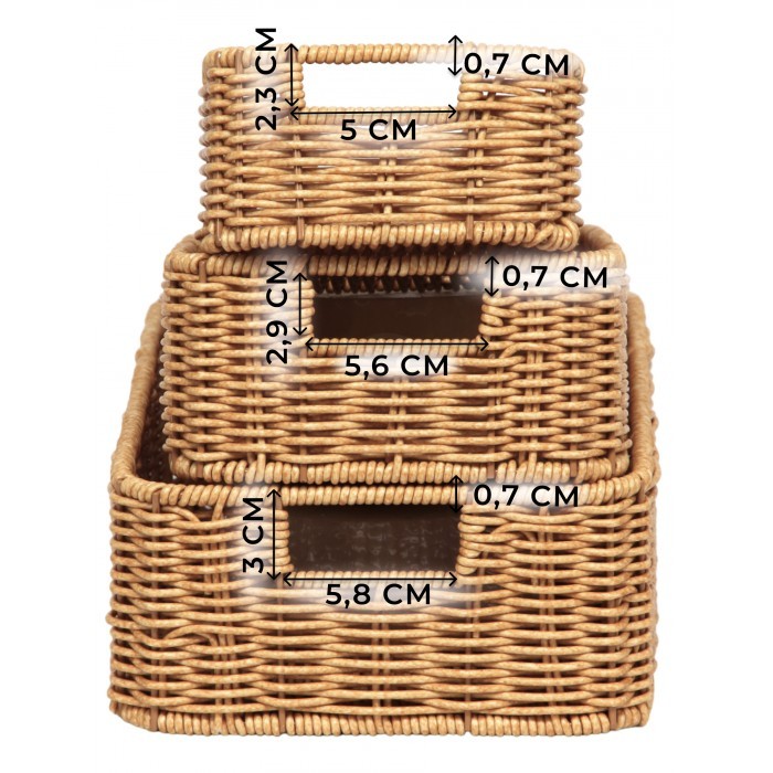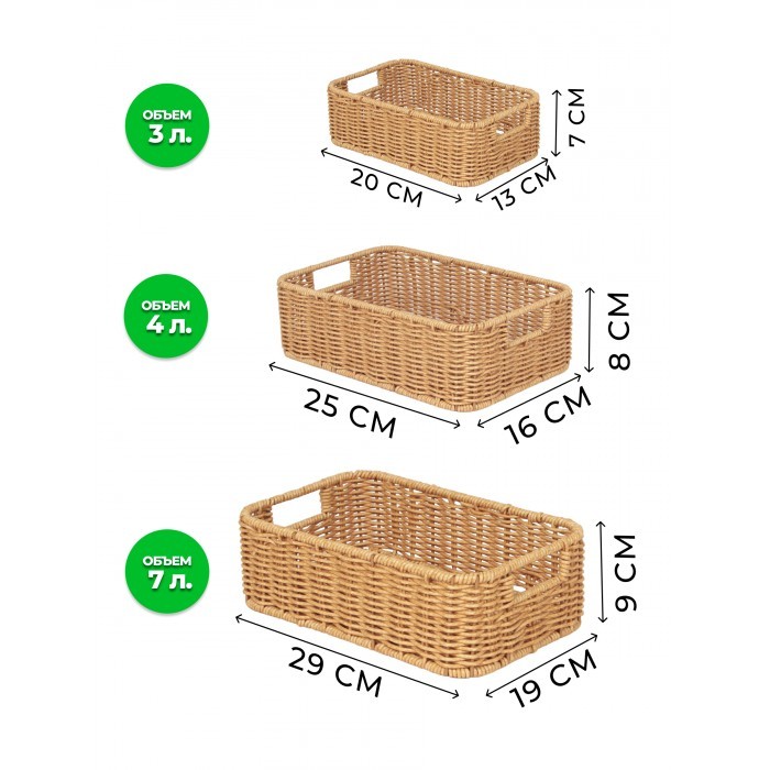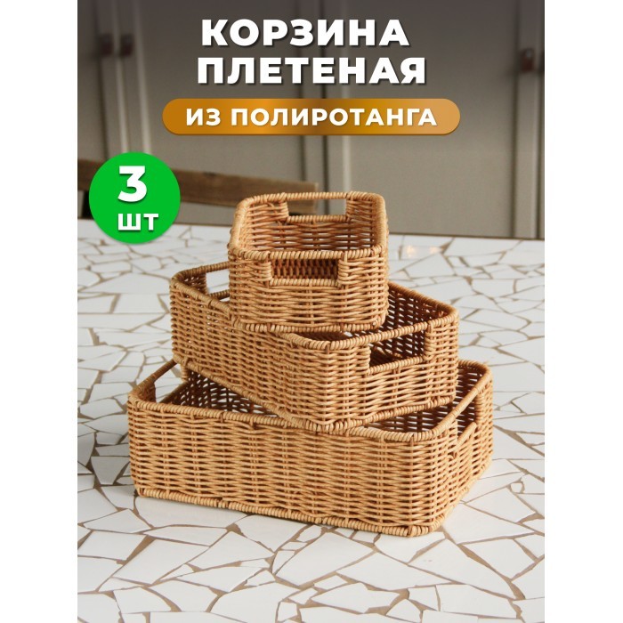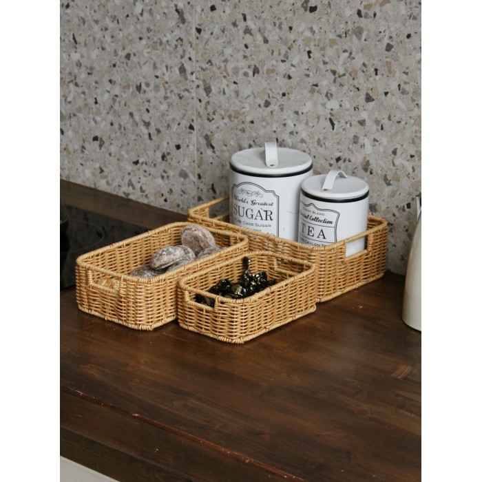 Корзина плетеная КОМПЛЕКТ настольный 3шт (29*19*9 /25*16*8 /20*13*7) иск/ротанг, песочный 263011