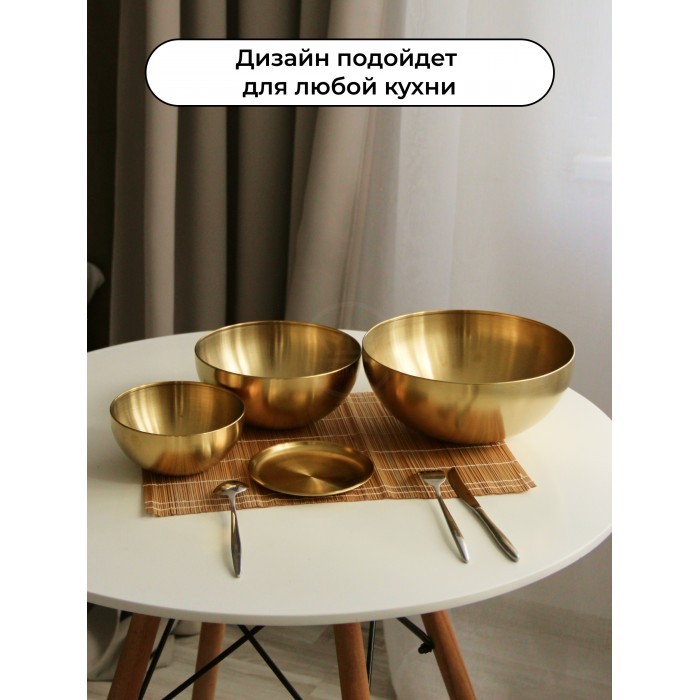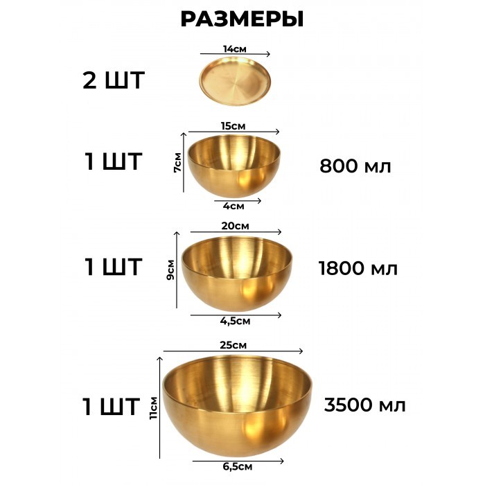 Набор Мисок из нержавеющей стали 5пред (15см, 20см, 25см-по 1шт+блюдце 14см - 2шт) золото 262427