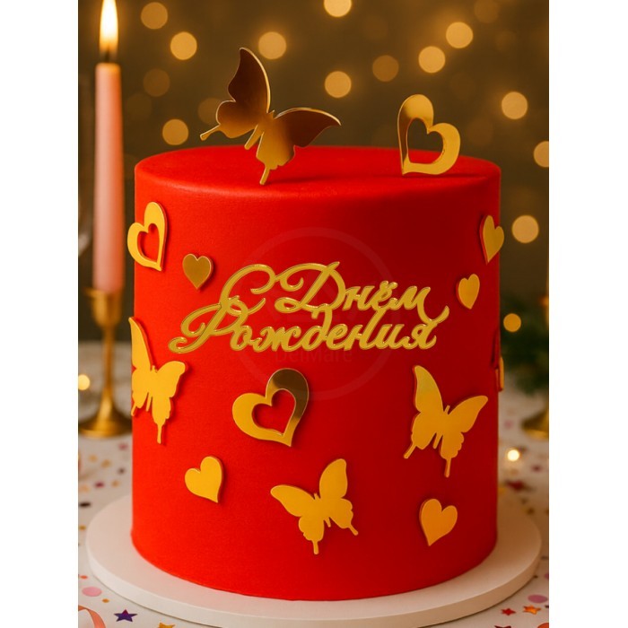 Топпер зеркальный Сднем рождения (Бабочки 8шт, Сердце 3шт), золото 266158