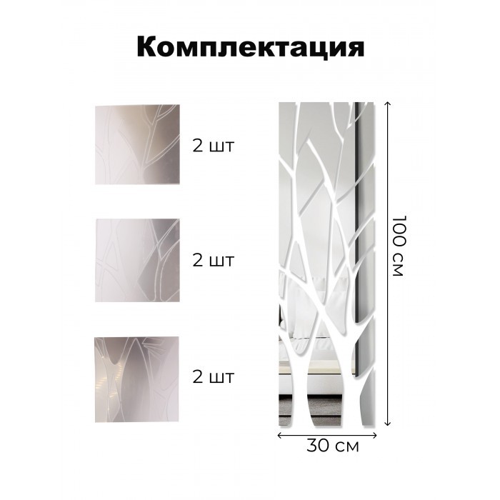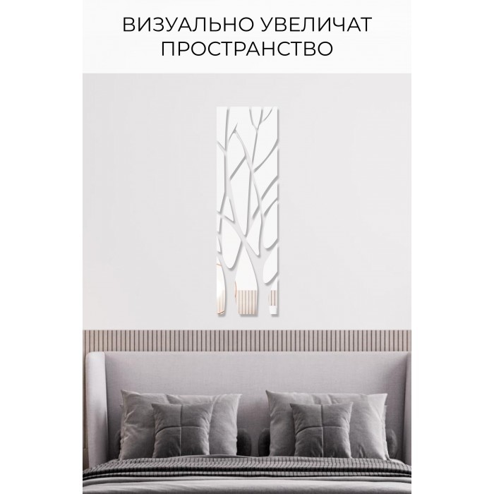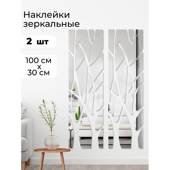 Интерьерные зеркальные наклейки Дерево 2шт (90*30см- 2 шт. трафарет ) серебро 265532