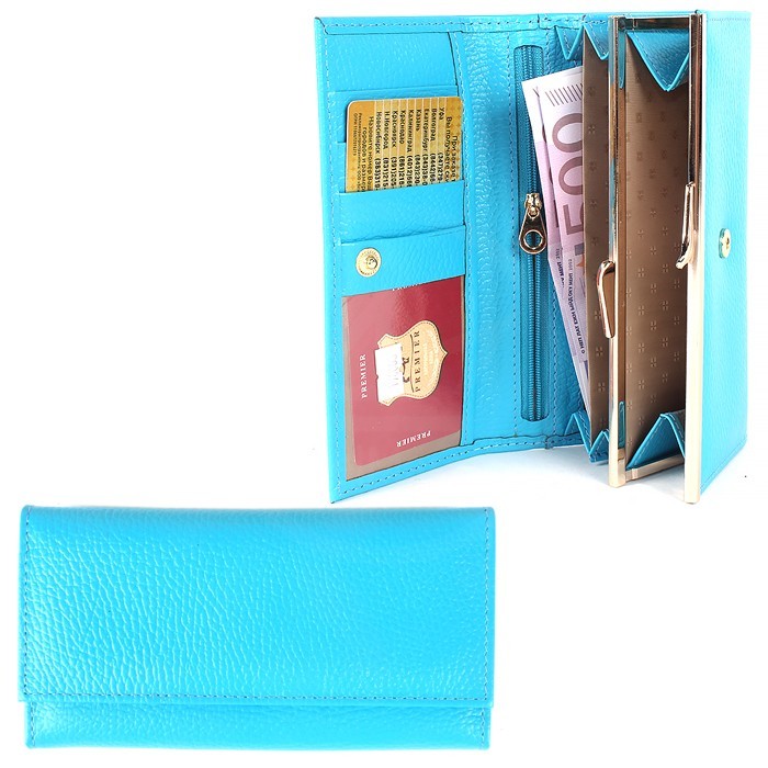 Портмоне женское Premier-D-1 н/к, 6 отд, 4 карм, голубой флотер (324) 194063