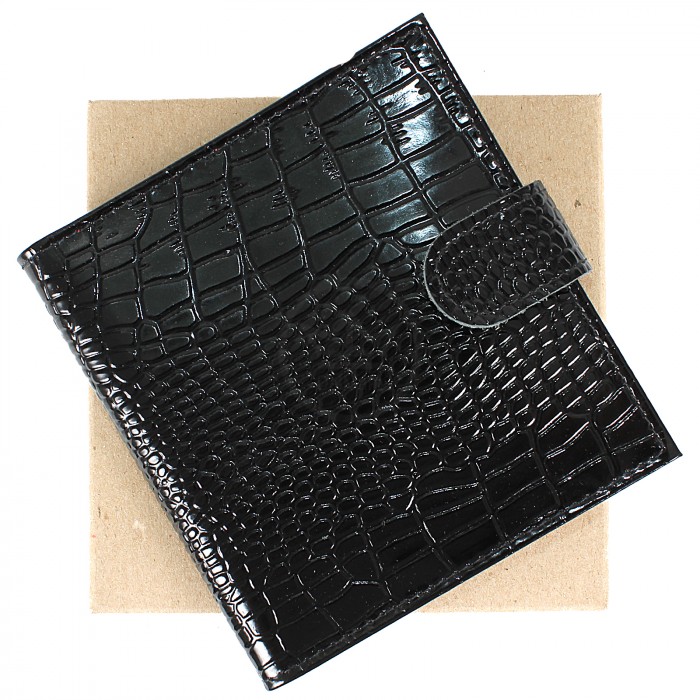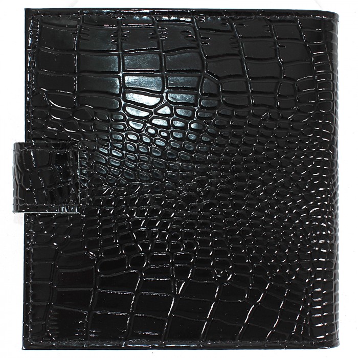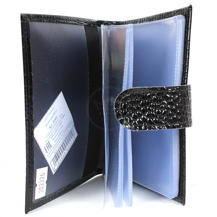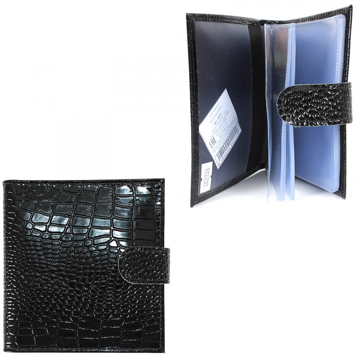 Визитница Croco-В-203 (с хляст, 2х-рядная, 32карточки) натуральная кожа черный крокодил (200) 202326