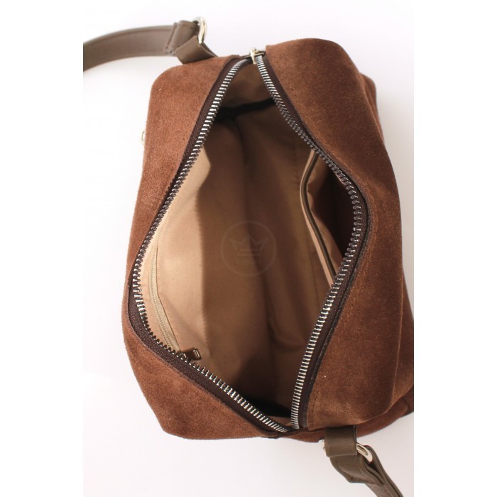Сумка женская натуральная замша ADEL-114-809 (отделка - ИСК/КОЖА), 1отд, плечевой ремень, шоколад mpl 266209