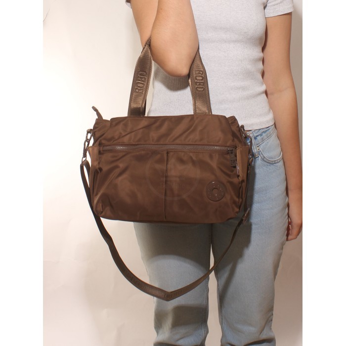 Сумка женская текстиль BoBo-758-1, 3отд, плечевой ремень, коричневый 266137